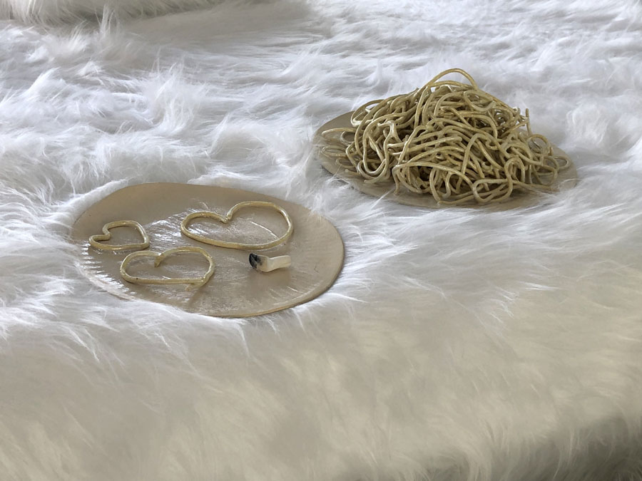 L'installation 202020 propose de nous remémorer l'effet qu’a eu le confinement sur la jeunesse. Nous sommes en 2020, année marquée par la pandémie du covid. Une jeune femme de 20 ans, confinée dans 20 mètres carrés, alors qu’il est 20 heure, ne peut pas sortir. L'espace confiné devient le théâtre de ses émotions et de ses frustrations. Un socle figure un lit, autour duquel son monde s’organise. Des objets en céramiques émaillées, fragiles et précieux représentent les effets personnelles et quotidiens de la jeune femme. L’ensemble se fige dans une sorte de chaos, à l’image du désordre caractéristique d’une chambre de post-adolescente livrée à elle-même. Le chaos visuel devient l’expression d’un moment de transition où, contrariée dans son désir de liberté une future adulte cherche des échappatoires. Tout en abordant des thèmes liés à la féminité et son émancipation, l’œuvre confronte les limites d'un espace personnel à celles de la réalité collective.
