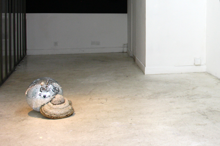 Une boule à facettes et un champignon de souche sont soudés l’un à l’autre. La boule disco diffracte la lumière tandis que le champignon semble se nourrir du corps lumineux. Big Bang est un objet hybride né de la collision de deux corps étrangers. |